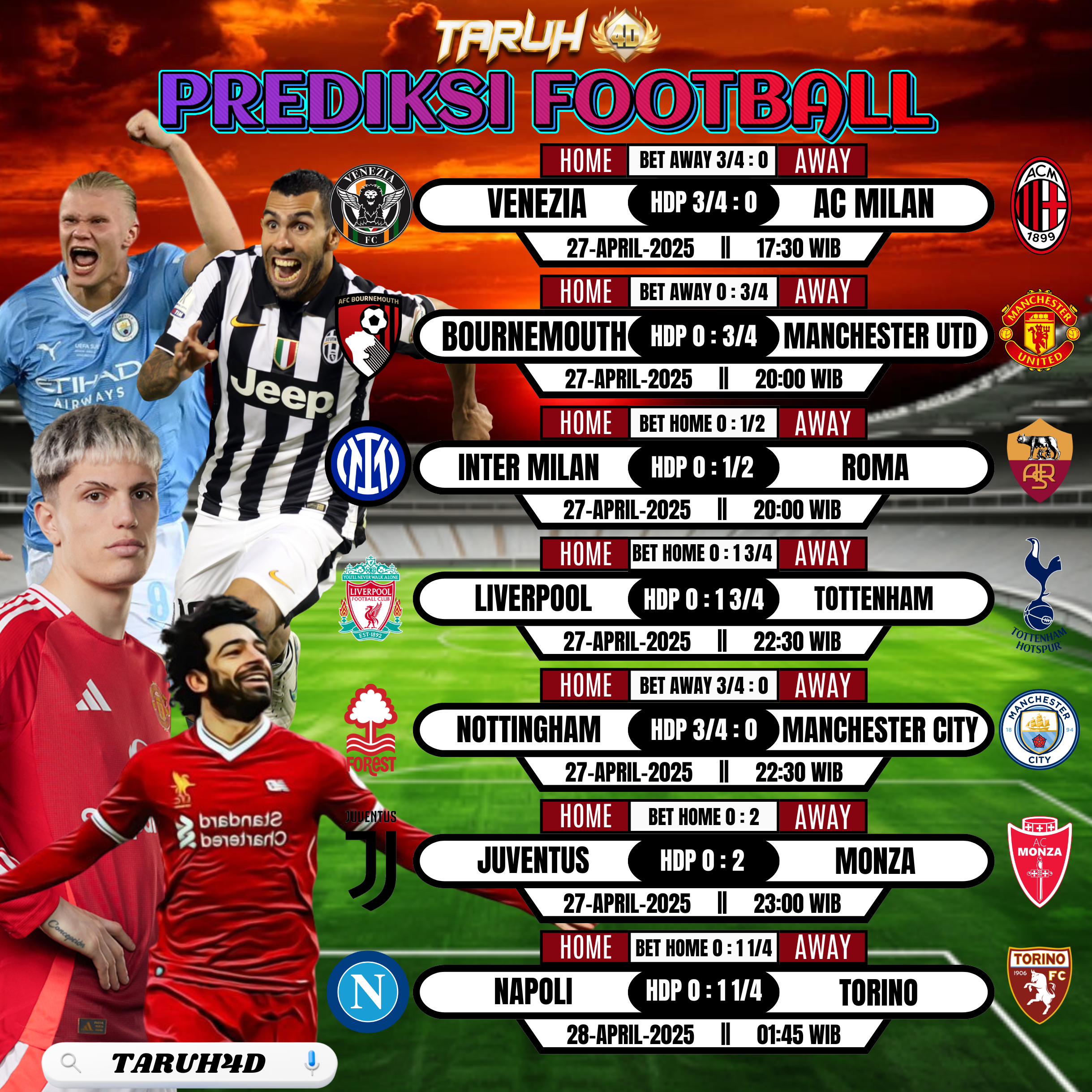 Prediksi Sepakbola akurat hari ini hanya di situs kami, buruan pasang taruhan tim terbaik anda sekarang juga bersama TARUH4D.