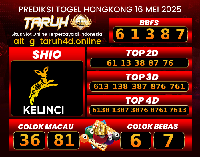 TARUH4D PREDIKSI HONGKONG LOTTO TOGEL : 16 MEI 2025