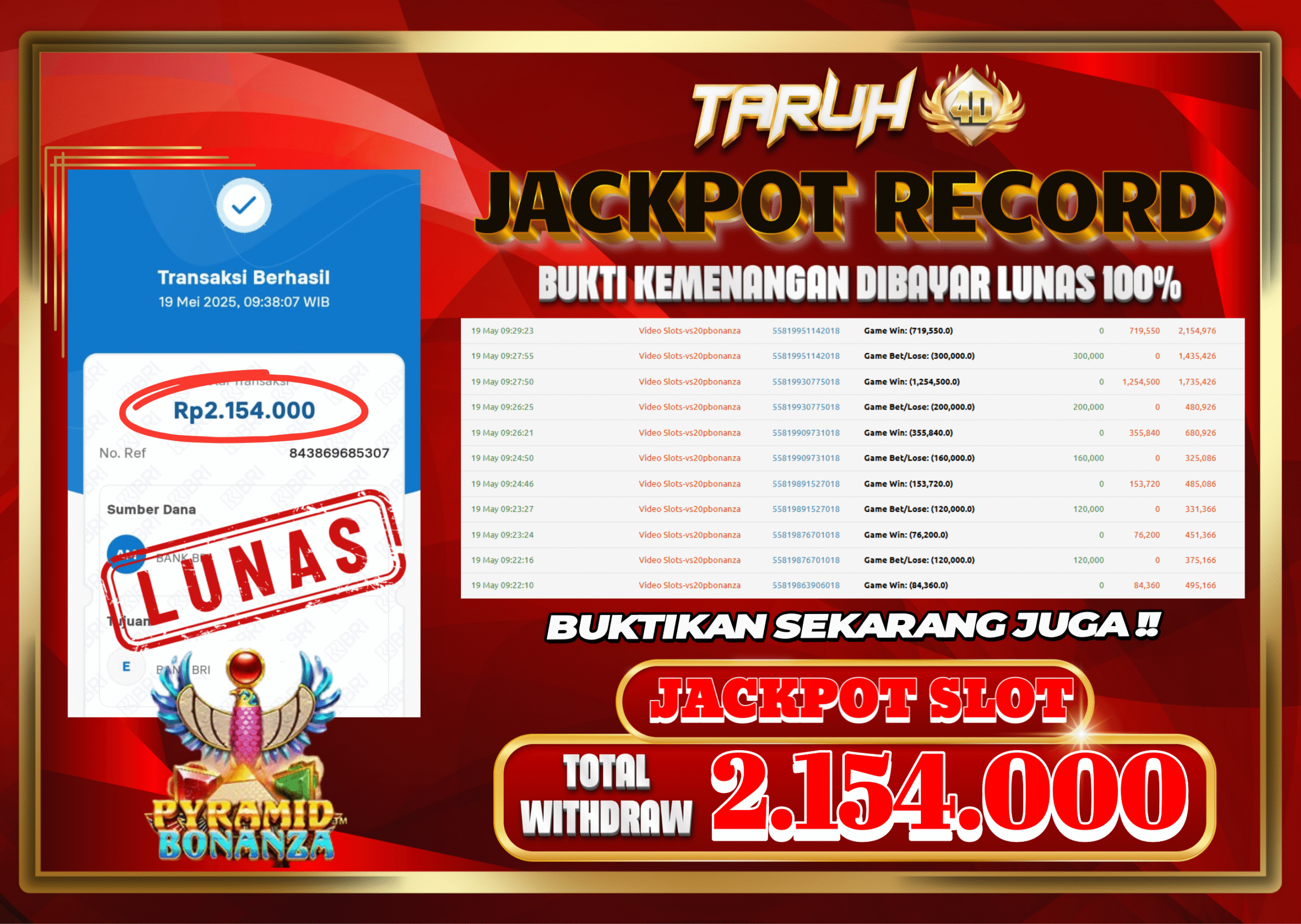 Selamat kepada User id : D****57 Telah berhasil mendapatkan kemenangan besar pada permainan slot PYRAMID BONANZA kemenangan Sebesar Rp.2.154.000, Setelah mengisi formulir withdraw dengan kurung waktu hanya 5 – 10 menit pihak taruh4d sudah melakukan transfer kepada pemilik Userid dan dana sudah dapat di cairkan oleh pemenang. Bukti pembayaran yang kami berikan merupakan bukti pembayaran yang SAH / VALID yang langung di dapatkan melalui tanda transfer transaksi dari Bank yang di tuju.