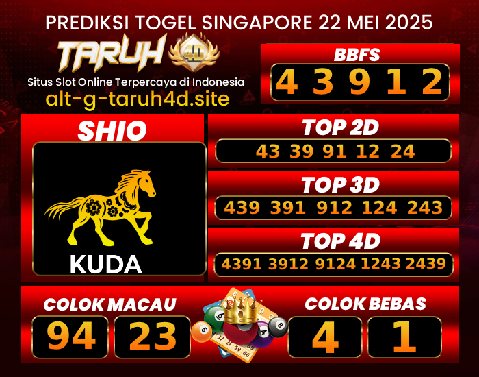 TARUH4D PREDIKSI SINGAPORE POOLS TOGEL : 22 MEI 2025