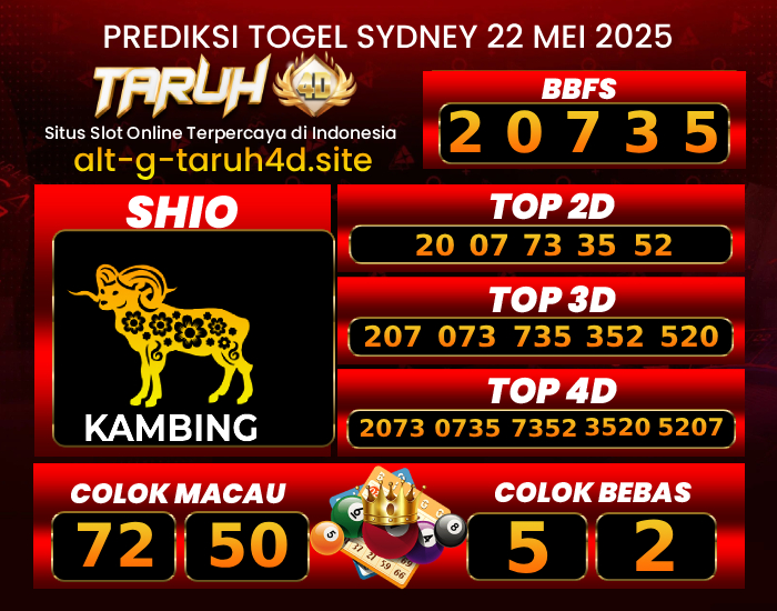 TARUH4D PREDIKSI SYDNEY LOTTO TOGEL : 22 MEI 2025