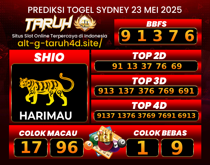 TARUH4D PREDIKSI SYDNEY LOTTO TOGEL : 23 MEI 2025