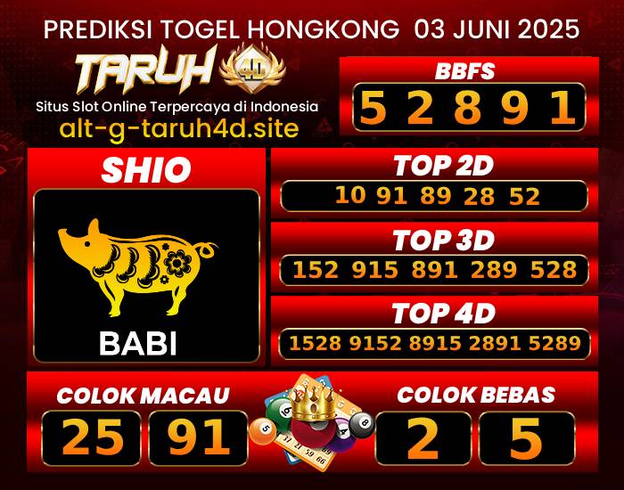TARUH4D PREDIKSI HONGKONG LOTTO TOGEL : 03 JUNI 2025