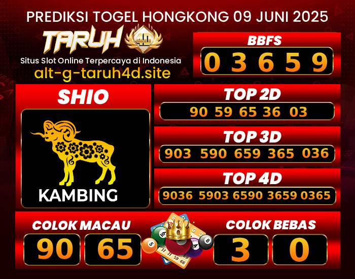 TARUH4D PREDIKSI HONGKONG LOTTO TOGEL : 09 JUNI 2025