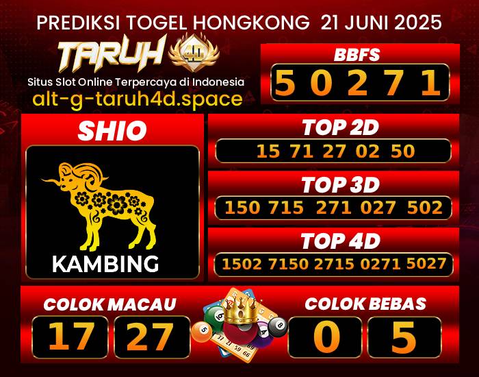 TARUH4D PREDIKSI HONGKONG LOTTO TOGEL : 21 JUNI 2025