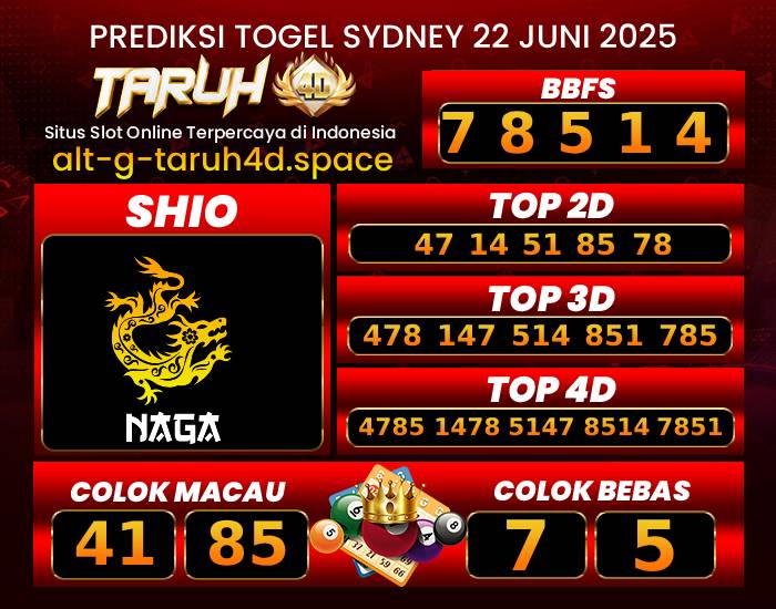 TARUH4D PREDIKSI SYDNEY LOTTO TOGEL : 22 JUNI 2025
