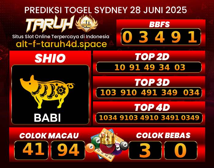 TARUH4D PREDIKSI SYDNEY LOTTO TOGEL : 28 JUNI 2025