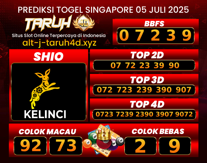 TARUH4D PREDIKSI SINGAPORE POOLS TOGEL : 05 JULI 2025