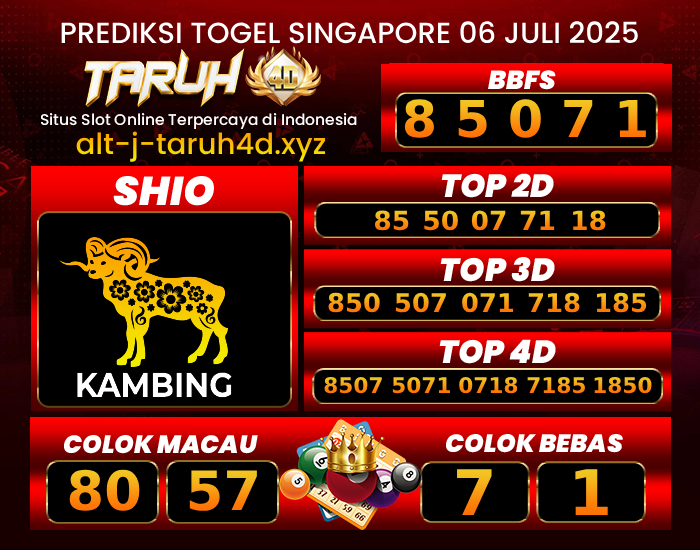 TARUH4D PREDIKSI SINGAPORE POOLS TOGEL : 06 JULI 2025