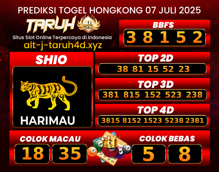 TARUH4D PREDIKSI HONGKONG LOTTO TOGEL : 07 JULI 2025