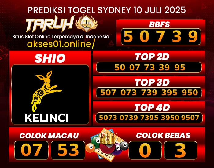TARUH4D PREDIKSI SYDNEY LOTTO TOGEL : 10 JULI 2025