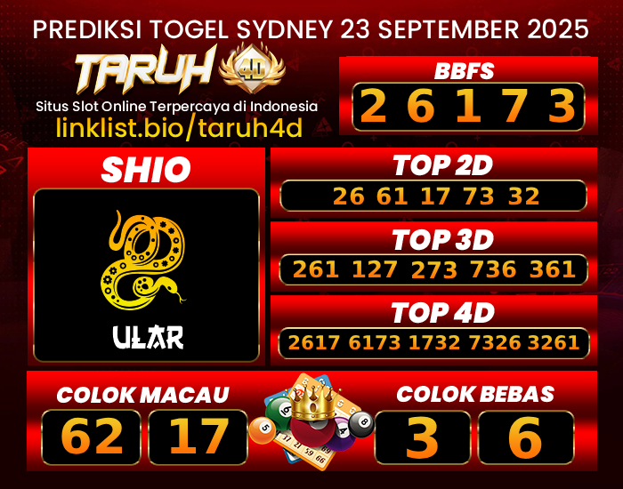 Jadi, tunggu apalagi? Gabung sekarang juga di TARUH4D dan rasakan sensasi bermain togel dan slot online seperti belum pernah sebelumnya. Dapatkan prediksi togel terjitu, nikmati berbagai promo dan bonus menarik, serta rasakan keamanan dan kenyamanan bermain di situs bandar prediksi togel terjitu dan bandar slot gacor online terpercaya. Jadilah bagian dari komunitas TARUH4D dan raih kemenangan besar bersama kami