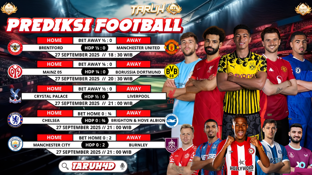 Pertandingan sepak bola selalu menarik untuk diprediksi, apalagi jika dipasang taruhan. Dengan perkembangan dunia taruhan online seperti taruh4d, membuat pertandingan semakin seru untuk diikuti. Banyak faktor yang perlu dipertimbangkan saat memprediksi pertandingan sepak bola, mulai dari performa tim, kondisi pemain, hingga rekor pertemuan sebelumnya.