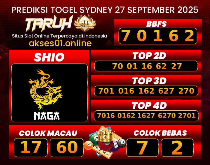 TARUH4D PREDIKSI SYDNEY LOTTO TOGEL : 27 SEPTEMBER 2025