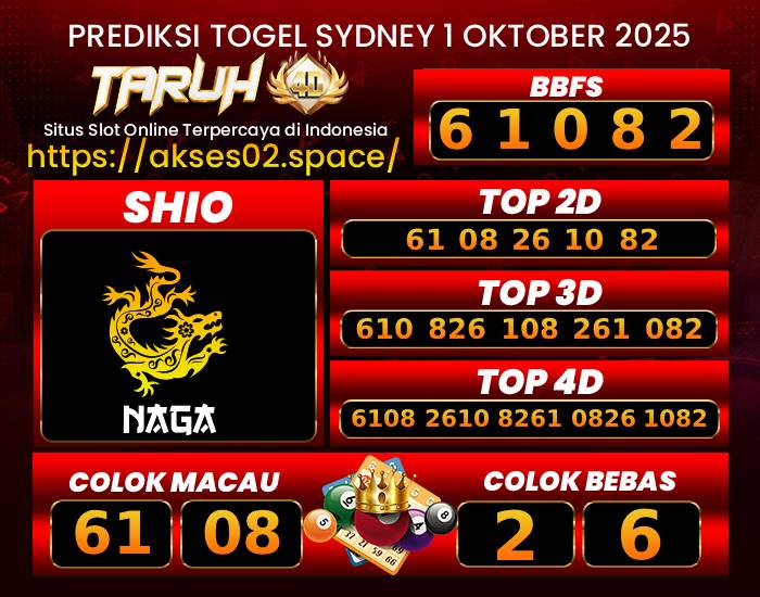 TARUH4D PREDIKSI SYDNEY LOTTO TOGEL : 01 OKTOBER 2025