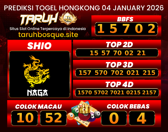 TARUH4D PREDIKSI HONGKONG LOTTO TOGEL : 04 JANUARI 2025
