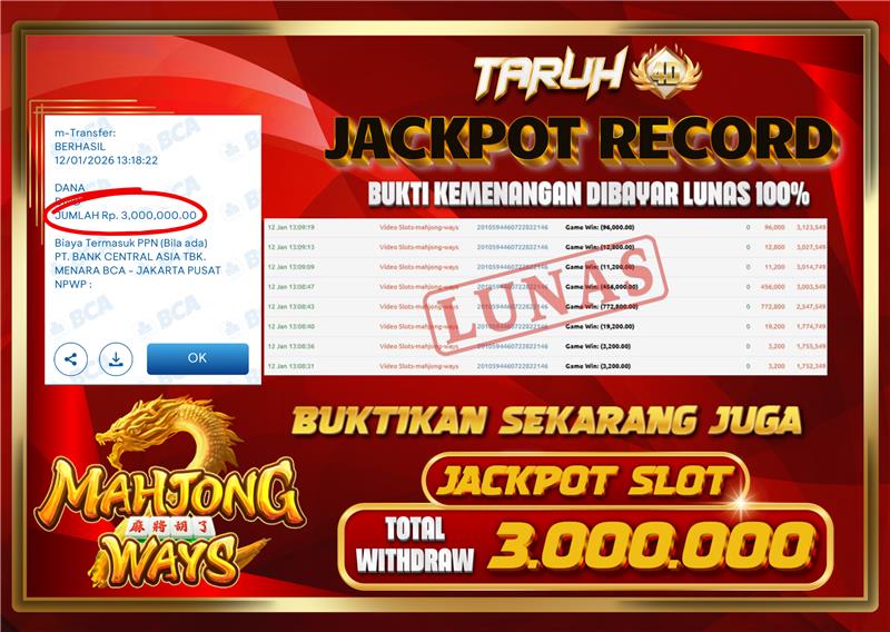 TARUH4D JACKPOT SLOT MAHJONG WAYS  Rp.3.000.000,- LUNAS!!!