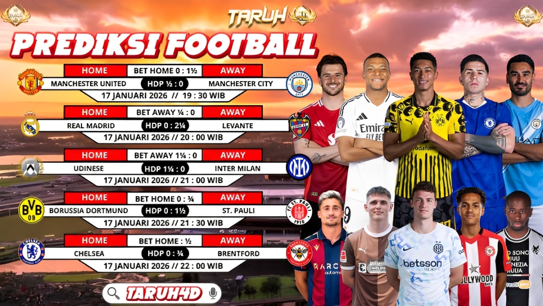Pertandingan sepak bola selalu menarik untuk diprediksi, apalagi jika dipasang taruhan. Dengan perkembangan dunia taruhan online seperti taruh4d, membuat pertandingan semakin seru untuk diikuti. Banyak faktor yang perlu dipertimbangkan saat memprediksi pertandingan sepak bola, mulai dari performa tim, kondisi pemain, hingga rekor pertemuan sebelumnya.