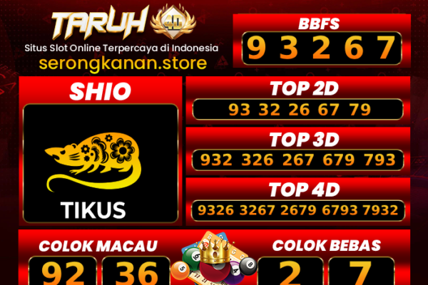 TARUH4D merupakan situs bandar prediksi togel terjitu serta bandar slot gacor online terpercaya yang siap memberikan pengalaman bermain terbaik bagi para penggemar judi online. Dengan berbagai pasaran togel yang lengkap dan berbagai pilihan permainan slot yang menarik, TARUH4D menjadi pilihan utama bagi para pemain yang menginginkan keseruan dan keuntungan dalam bermain.